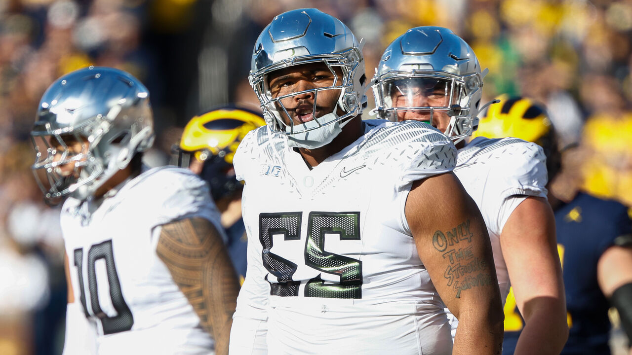 Harmon put together a breakout season after transferring to Oregon, recording five sacks and leading all interior defensive linemen with 55 pressures, according to PFF. For reference, Mason Graham finished the year with 34. Harmon isn't quite as explosive or agile, and he doesn't yet have a deep arsenal of rush moves, but he plays with incredible natural strength and the hand usage to defeat blocks with ease. Harmon's abilities in the run game are arguably even more impressive. His length and technique allow him to control blocks at the line of scrimmage, and he's got the play strength and anchor ability to consistently hold his ground against double teams. Having only the one year of high-end play could be considered a red flag, but it might also be a sign there's even more to unlock with some development at the next level. Harmon has a chance to be a productive three-down player in any scheme.