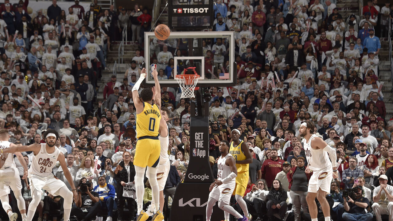 - Jarrett Allen blocks Tyrese Haliburton, Cavs can't corral the loose ball, Pacers retain possession