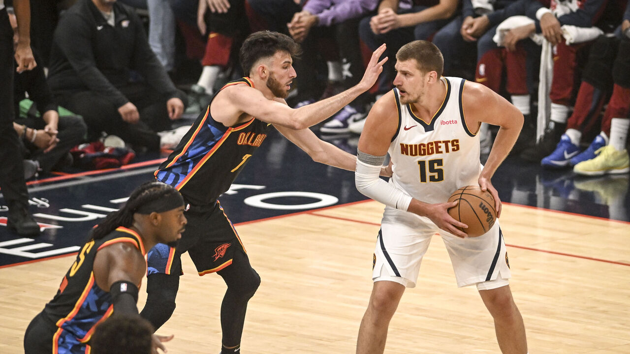 The Thunder tried everything under the sun in their attempts to slow Jokic down. They put Chet Holmgren on him while Isaiah Hartenstein roamed off Aaron Gordon, they tried Hartenstein on him while Holmgren roamed off Gordon, they pre-rotated to try and take away his short rolls, they veer-switched smaller guys onto him to take away his pick-and-pops, they had wings stunting and digging down on his dribble, they tried hard-doubling and soft-doubling him in the post. They forced him into seven turnovers. But pivot after reverse pivot, push shot after push shot, offensive rebound after offensive rebound, he kept finding his way to his sweet spots and kept Denver in the game long enough for OKC to collapse.