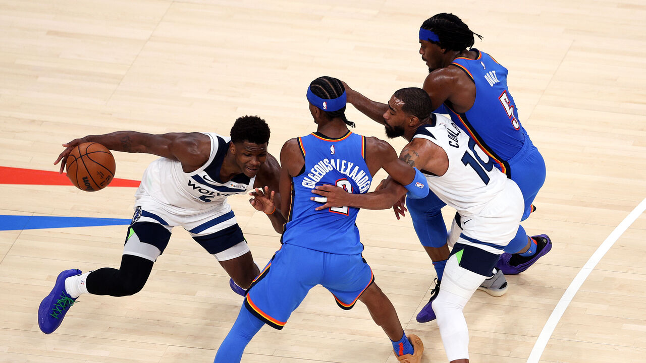 The series against the Thunder certainly wasn't Edwards' best, but it may have been the most illuminating because of the particular ways it challenged him - and the way he largely rose to meet those challenges. Throughout the series, he dealt with relentless pressure on and off the ball from a revolving door of all-world defenders. Any time he managed to shake one of them, he was met by one or two others. He was given no airspace, and none of his teammates were able to give him the reprieve he needed as a creator. Still, until he ran out of gas in Game 5, he continued looking for every opportunity to plunge into the belly of OKC's beastly defense despite the suboptimal spacing around him.