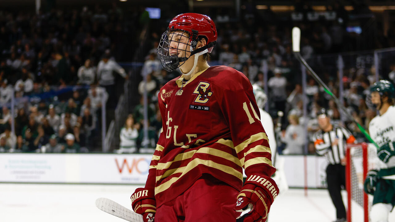 James Hagens, C, Boston College (NCAA): Jack Hughes. A lot of similarities from his game that I can see in mine. The way he skates, the way he sees the ice, the way he scans. I think they're all things I try to implement in my own game.