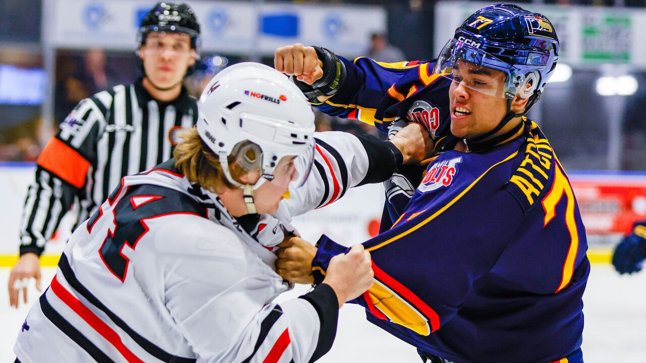 In January, Aitcheson recorded a Gordie Howe hat trick (goal, assist, fight) against the Owen Sound Attack, the fisticuffs following a devastating open-ice hit. In February, he sniped in overtime against the Saginaw Spirit before bowing at center ice in celebration. In March, No. 77 for Barrie again answered the bell in a playoff game versus the Niagara IceDogs after yet another monster collision.
