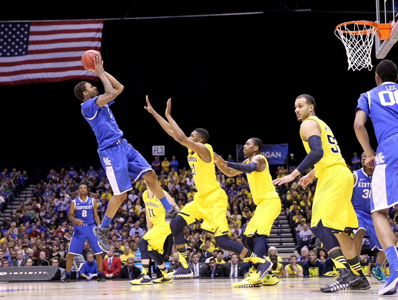 Freshman guard James Young scored 13 points in Kentucky's win over Michigan. None of them sweeter than this contested fadeway.