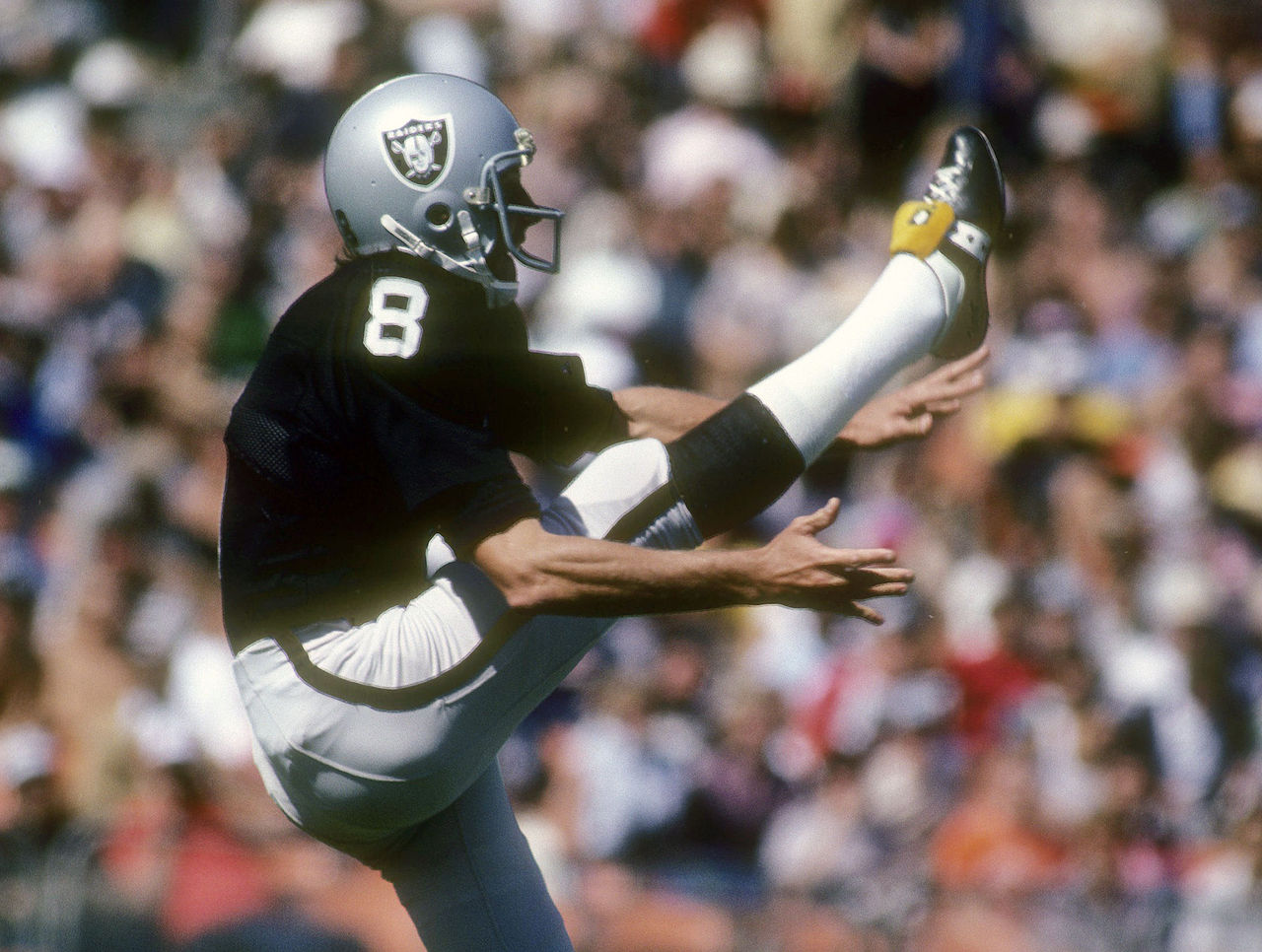 His name is Ray Guy and he wore No. 8.