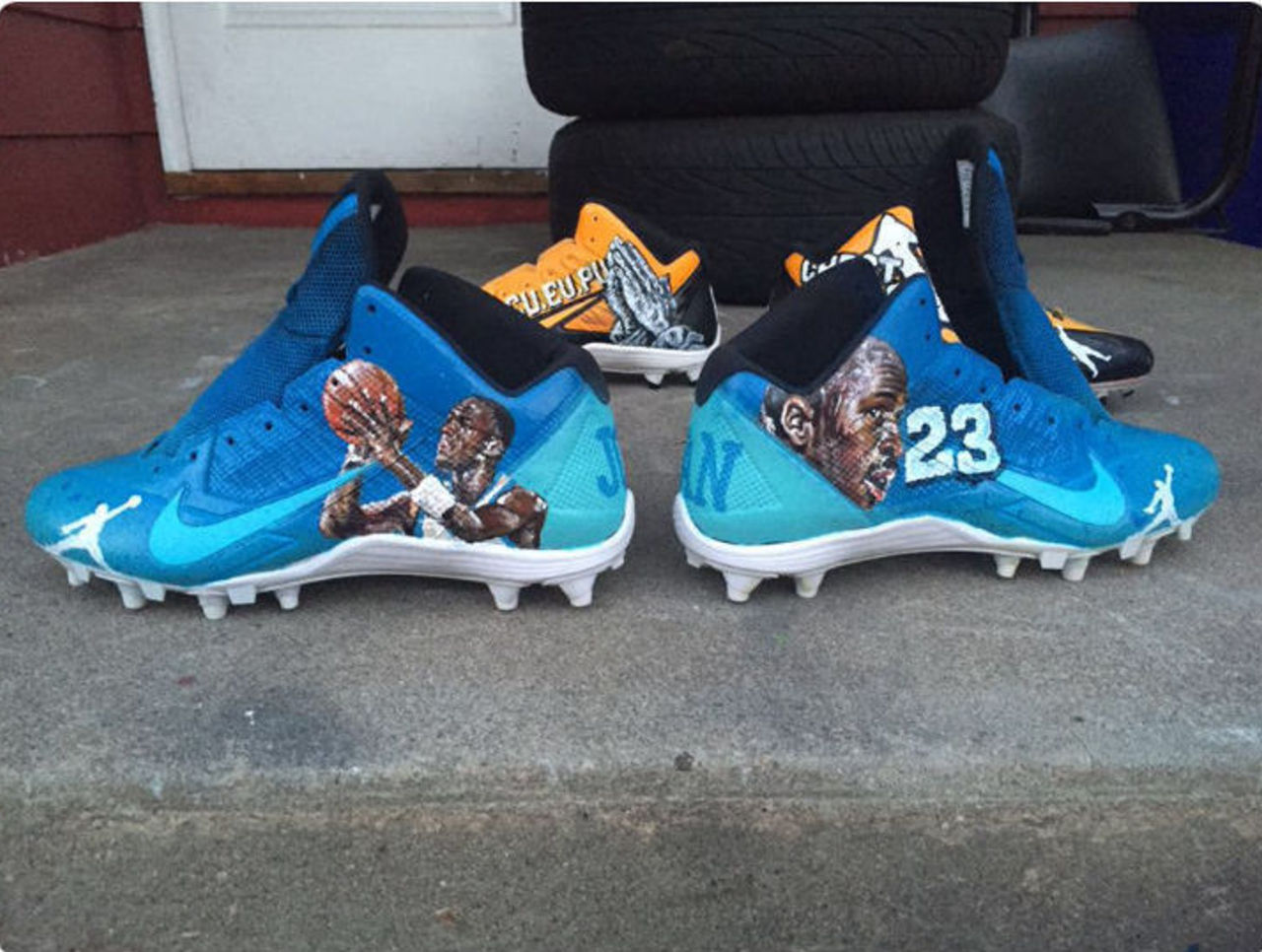 The Pittsburgh Steelers wide receiver shared a photo Monday on Snapchat of a pair of blue cleats featuring images of NBA legend Michael Jordan and the Jumpman logo.