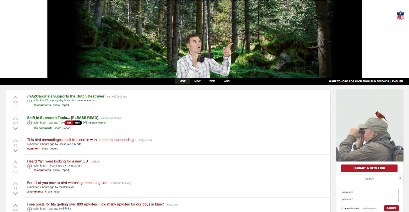 Moderators at r/AZCardinals turned the page into a bird-watching forum: