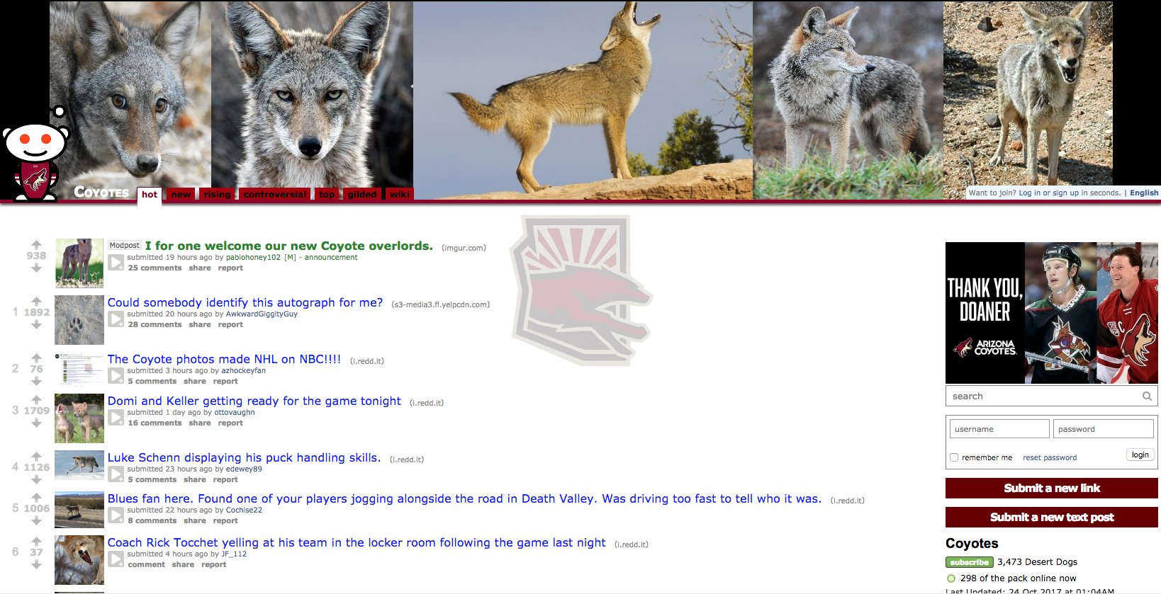 With the Cardinals coming off an embarrassing 33-0 loss to the Los Angeles Rams and the Coyotes sitting at 0-8-1 on the season, both fan bases have apparently given up on discussing those teams on their respective subreddits.