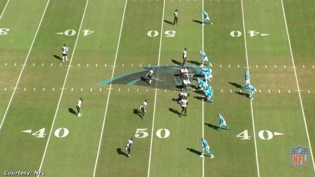 Many NFL teams are using this design, and here, after stressing the Ravens’ defense near the line of scrimmage on the previous two plays, the Panthers attack downfield:
