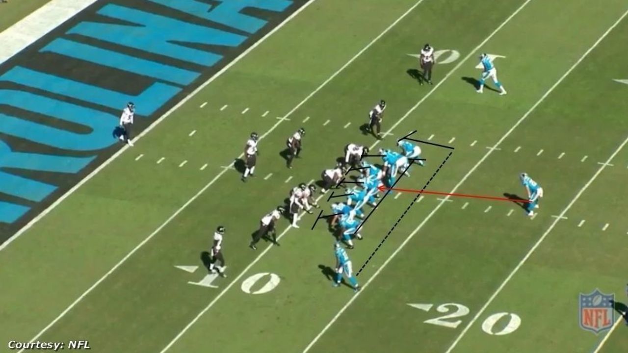 Turner remains a coach with the desire to push the ball downfield, and as we saw on the third play of this drive, the Panthers can take deep shots while incorporating play-action and misdirection to confuse defenders.