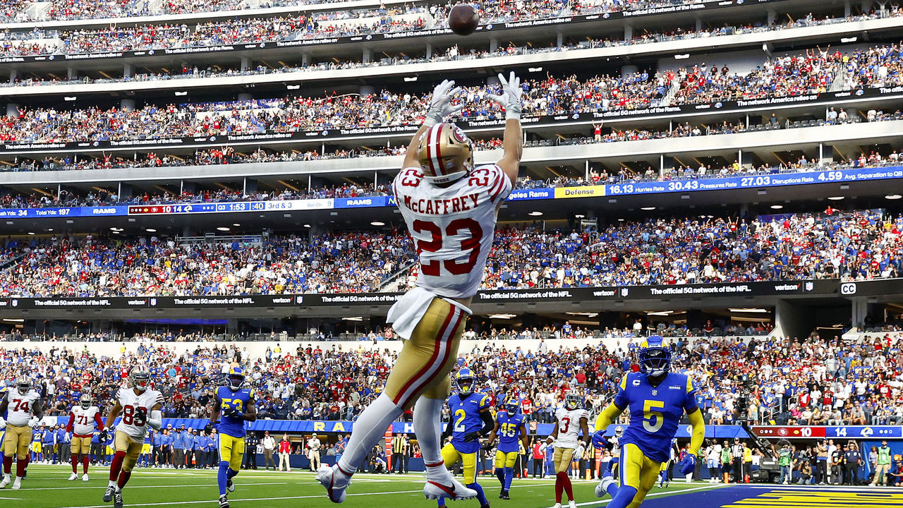 That's exactly why you trade all those picks. Christian McCaffrey offered a glimpse into the immense value he could provide for Kyle Shanahan's offense, torching the Rams for 94 yards and a touchdown on the ground, 55 yards and a touchdown as a receiver, and even throwing a 34-yard score for the LaDainian Tomlinson-esque trifecta. He was by far the best playmaker on the field for either team in a convincing win over Los Angeles. And he's probably only getting started. This offense is going to be a nightmare to defend when Deebo Samuel gets healthy and McCaffrey is fully immersed in the system.
