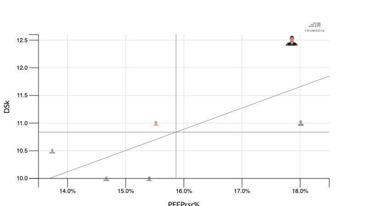 It's another banner year for Garrett, who eclipsed double-digit sack totals for the seventh consecutive season. Cleveland's star pass-rusher is at 11 on the year and his pressure efficiency has once again topped the charts. Garrett's pressure rate just fractionally beats out Trey Hendrickson for best among players with at least 10 sacks, per PFF.