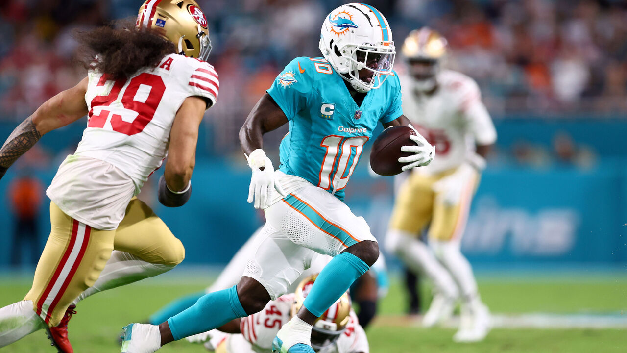 Jameson Williams and a few others were considered here, but we'll take the top speedster of this generation in spite of his age. Hill has averaged 13.1 yards per touch, has posted a double-digit average every season of his career, and has led the league in the category three times.