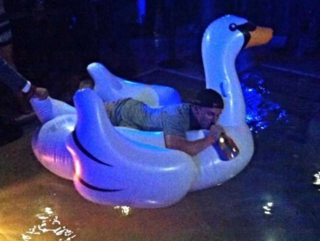 PHOTO: Johnny Manziel parties on a blow-up swan in Austin