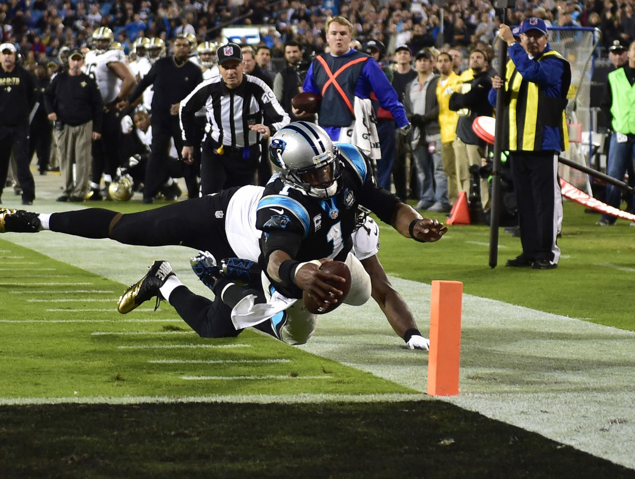 Cam Newton channeled Stretch Armstrong to score a touchdown during the Carolina Panthers' loss to the New Orleans Saints on Thursday night.
