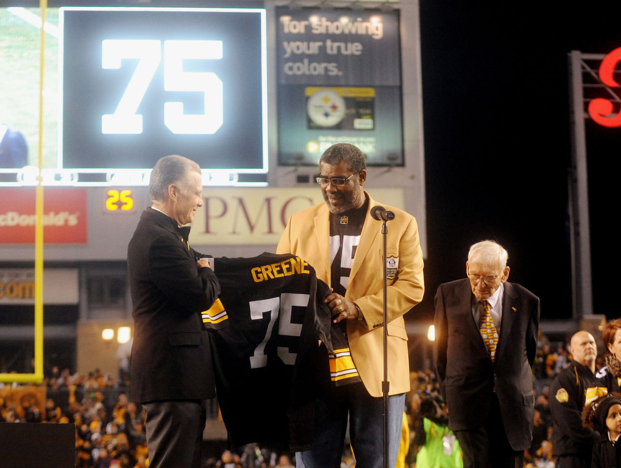 The Pittsburgh Steelers retired legendary defensive tackle, and noted Coca-Cola drinker, "Mean Joe" Greene's No. 75 at halftime during the Steelers' game against the Baltimore Ravens.