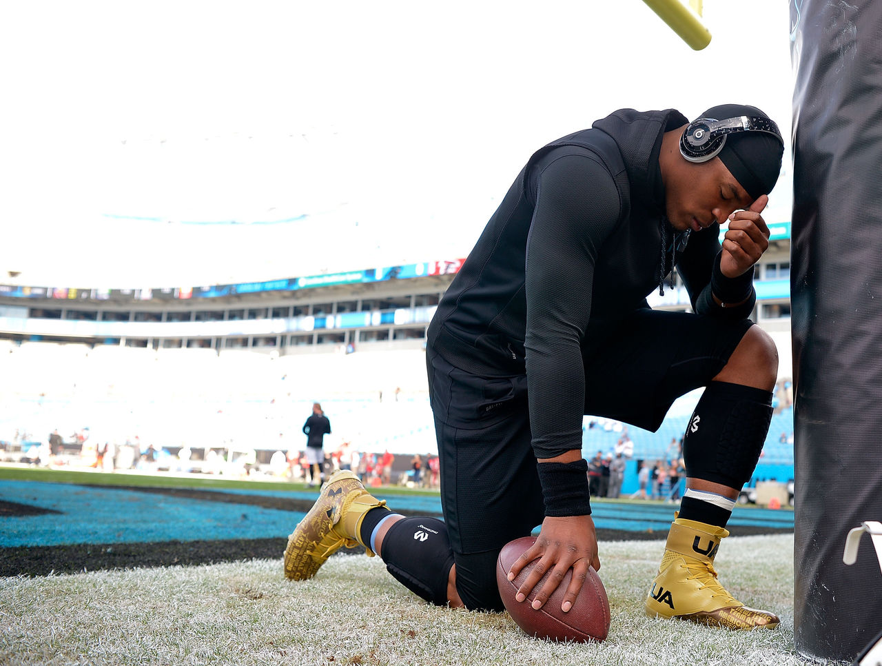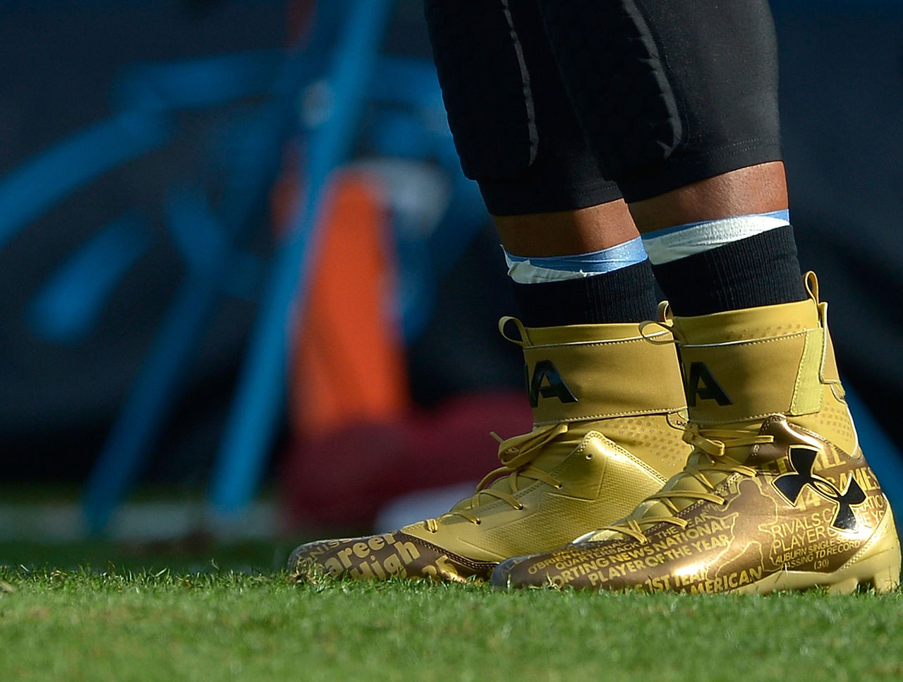 PHOTO: Cam Newton warming up in custom Heisman cleats
