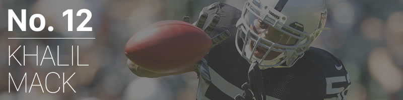 After proving himself to be a force against the run as a rookie, Mack’s early career development as a pass-rusher put his game over the top. His dominance was on full display in Week 14, when an incredible five sacks led the way to an upset road victory over the eventual Super Bowl-champion Denver Broncos. - Wilkins
