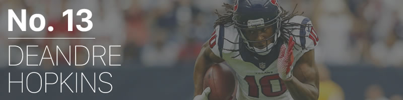 Hopkins made a strong push to be considered one of the NFL's premier wide receivers, despite playing with a relatively anonymous quartet at quarterback. Hopkins was targeted 192 times, a testament to his value on an otherwise anemic Texans offense. Possessing elite speed and body control, Hopkins is slated to be atop this list for the next decade. - Srinivasan