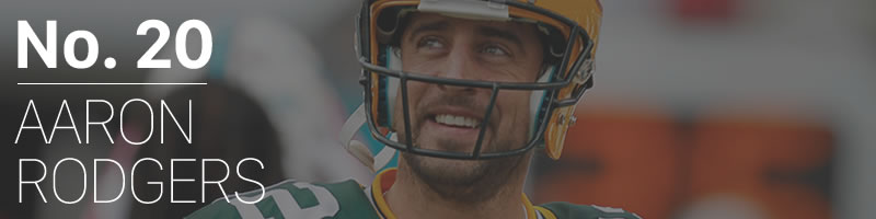 Can we really call nearly 4,000 yards passing and a 31:8 touchdown-to-interception ratio (all without top receiver Jordy Nelson) a down season? We can when a player has an established track record like Rodgers. The two-time MVP hit career lows in completion percentage and yards per attempt, but he's still so good that he cracks our top 20. - Woods