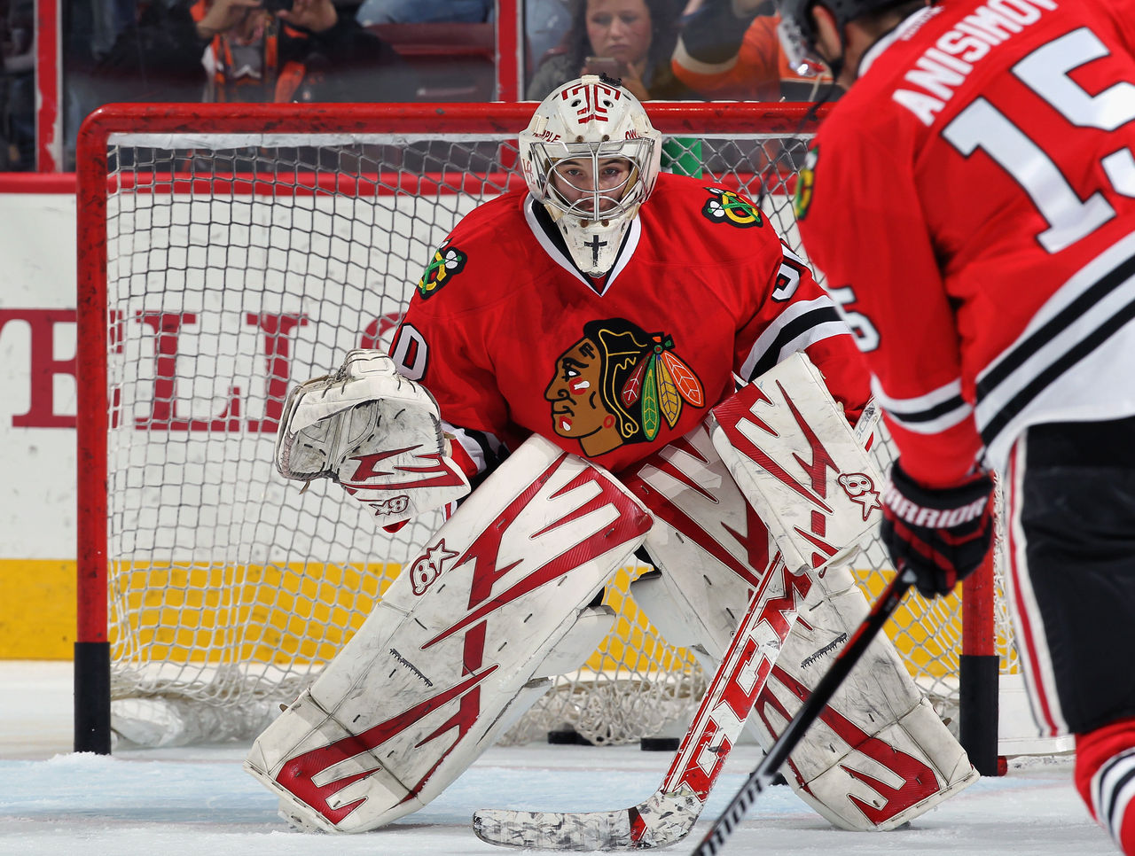 Corey Crawford couldn't make the club's 1 p.m. ET start against the Flyers - he had appendicitis. Chicago's minor-league team was in Grand Rapids, Mich., and the Blackhawks had no salary cap space to work with.