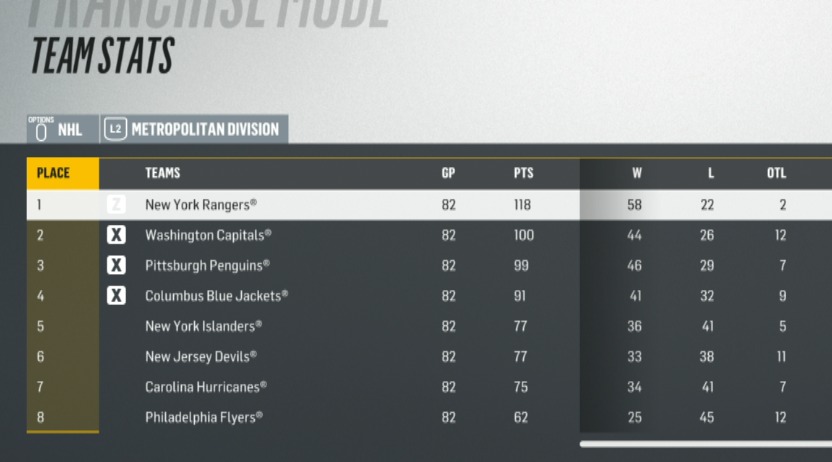 - Sheesh, how about those Rangers? A 118-point finish would establish a new franchise record and be enough to run away with the Presidents' Trophy.