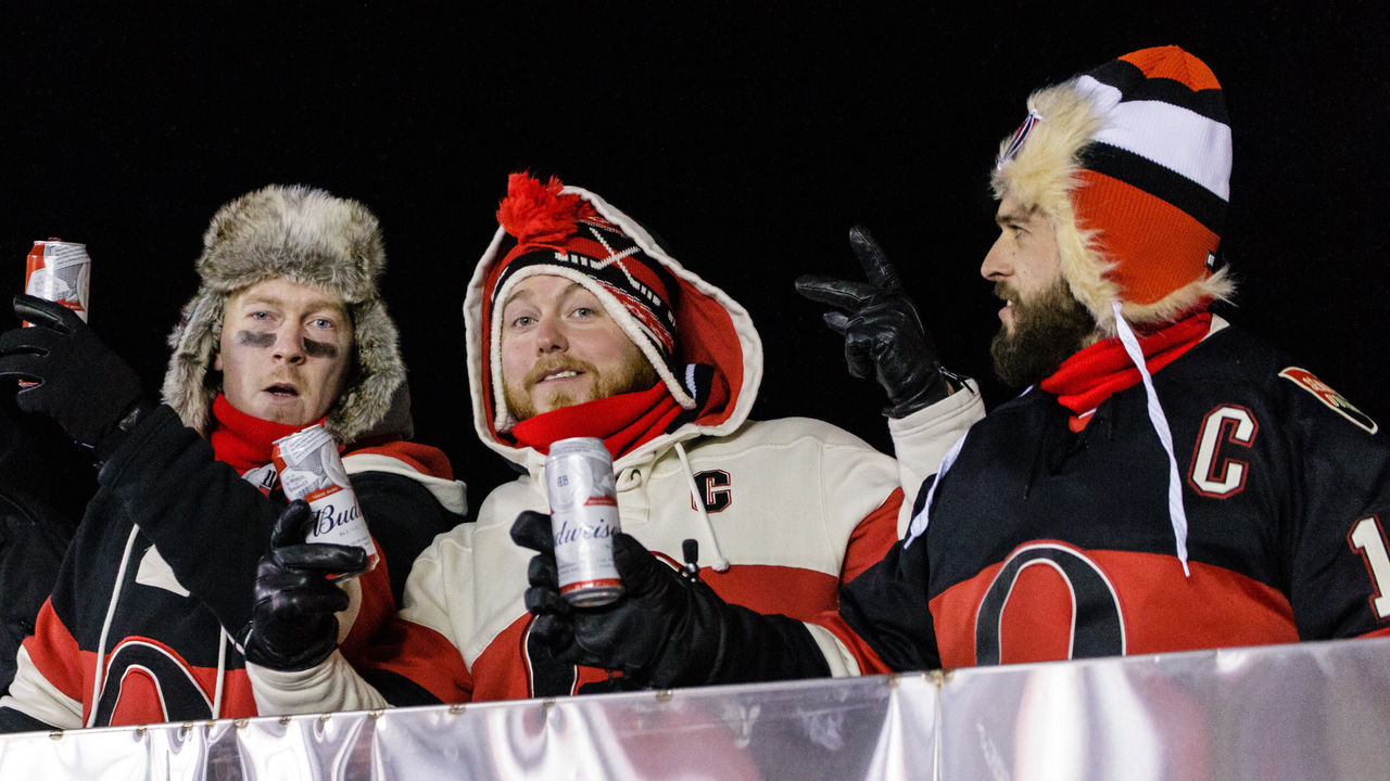 A perk of watching hockey in minus-10 degree weather: Your beer stays frosty all game long.