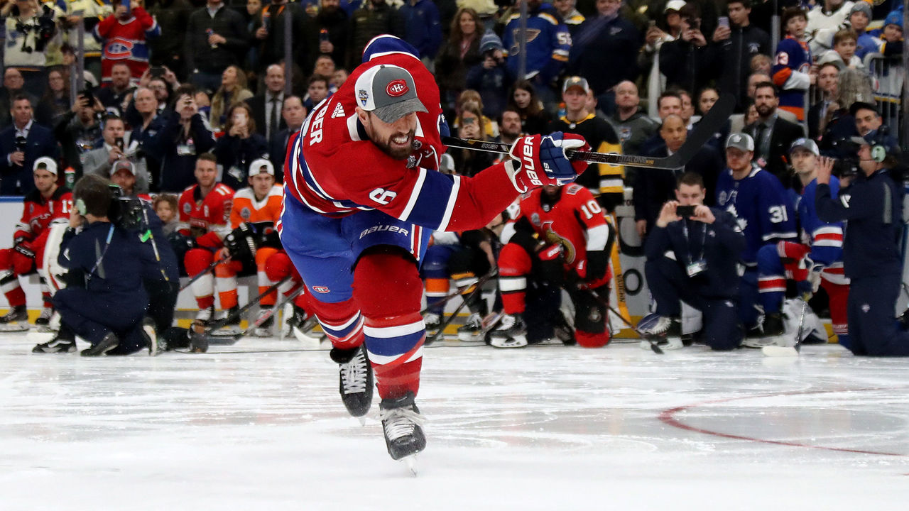 Shea Weber reclaimed his title and won for the fourth time in the process. The Montreal Canadiens rearguard fired home a 106.5-mph bomb on his second and final attempt to restore his status as hardest shot champion after being unable to take part in the two previous editions.