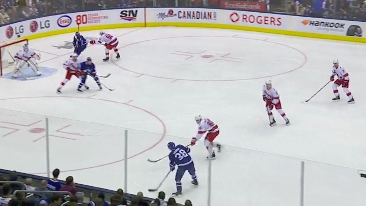 The Leafs experienced serious trouble both exiting their zone and entering Carolina's zone, while the Hurricanes served up a master class on how to exit their own territory. Check out how quickly this prime scoring opportunity for Zach Hyman dissolves into nothing: