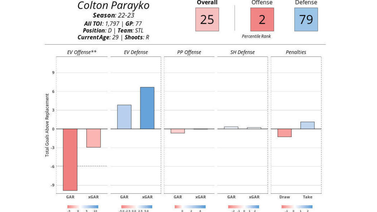 A deal would be complicated, though, as all four players have full no-trade clauses. Parayko, Krug, and Faulk all carry $6.5-million cap hits; Parayko is under contract through 2030, while Krug and Faulk are signed through 2027. Leddy inked a four-year deal worth $4 million annually this past offseason.
