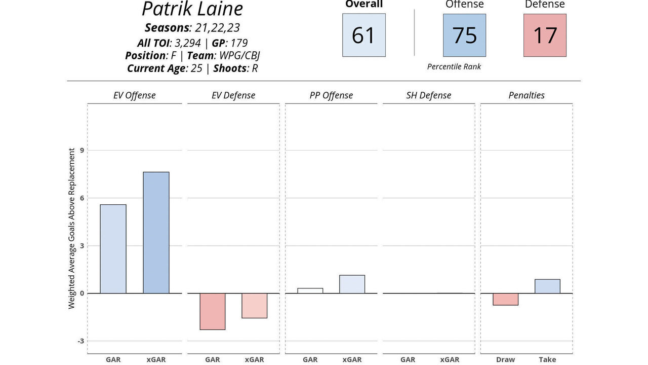Laine has performed well offensively of late, notching 22 goals and 30 assists while being limited to 55 games in 2022-23 due to injury. He produced a point per game the season before that, collecting 26 tallies and 30 helpers over 56 contests.