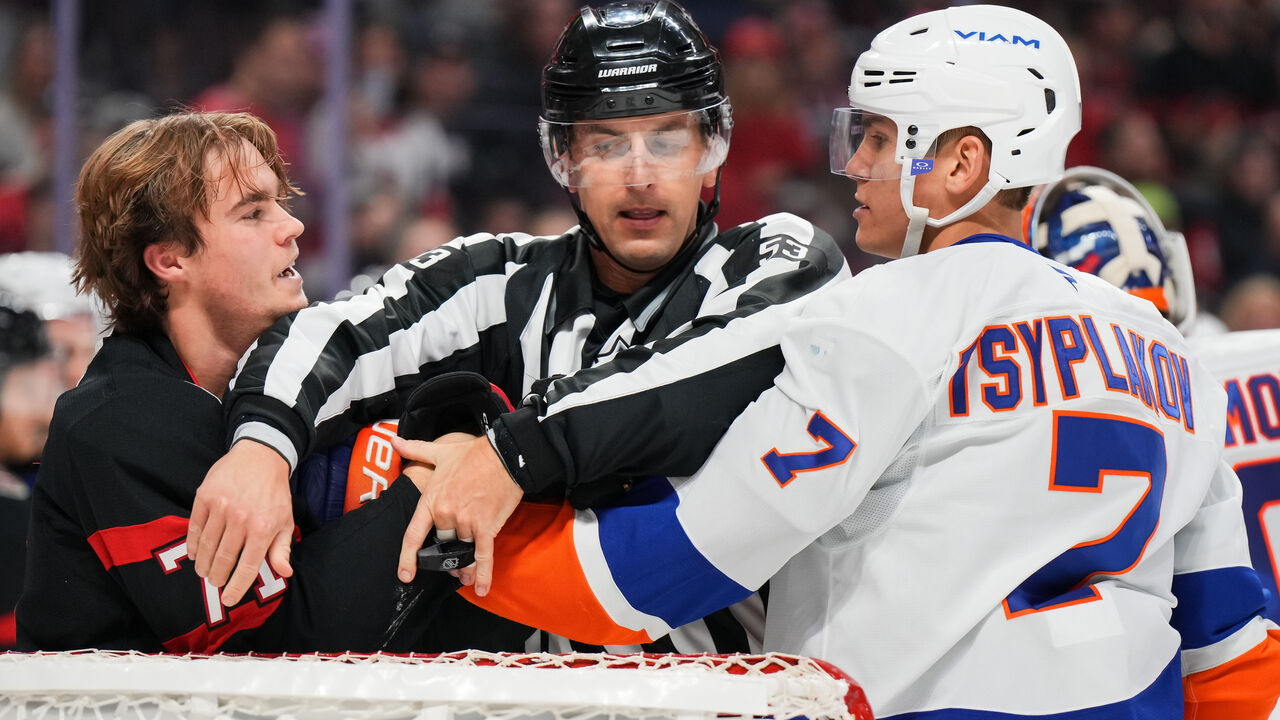 Load management: First Leo Carlsson in Anaheim, now Will Smith in San Jose. For the second straight season, an NHL team is limiting a high-profile rookie's workload. Smith, the fourth pick in 2023, has appeared in 17 of the Sharks' 21 games, recording four points while, at times, looking overwhelmed by the pro game. Three of Smith's four scratches have come on the first or second leg of a back-to-back. GM Mike Grier has said this load-management approach is supported by sports science data and involves Smith spending extra time in the gym. Two cases don't make a full-on trend. Still, one former NHL coach said the Ducks and Sharks are coddling their players. "The NHL is not a developmental league," the coach said. "There's a specific league for developing, and it's called the American Hockey League. Let them get used to the pro grind down there, make their big mistakes there."