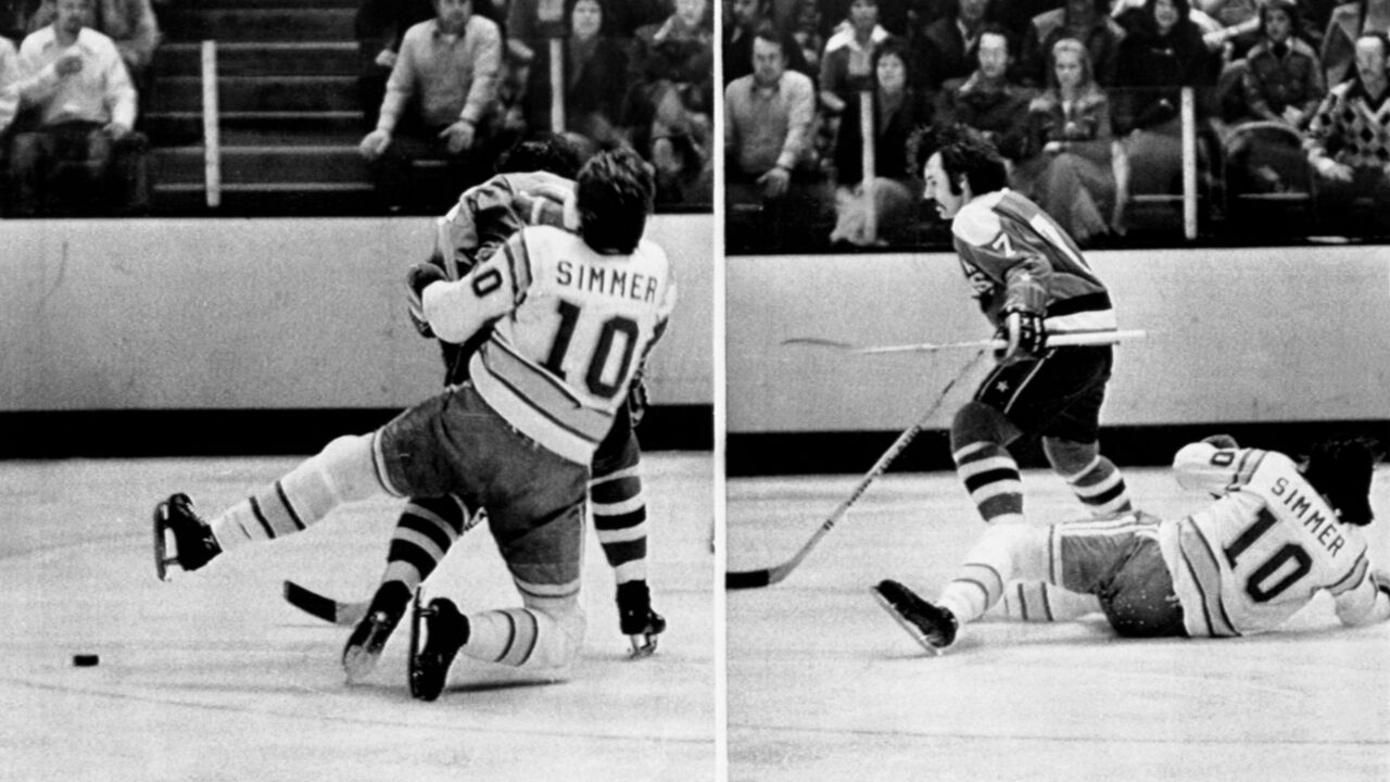 An unknowing bystander watching players skating victory laps in the empty Oakland Coliseum Arena on March 28, 1975, might have assumed they had just set a record. The NHLers, who were in various stages of undress following a 5-3 win over the California Golden Seals, were taking turns hoisting an old, green garbage bin overhead and ceremoniously presenting it to one another after each lap. Closer examination of the makeshift trophy would have revealed it was signed by each of them.