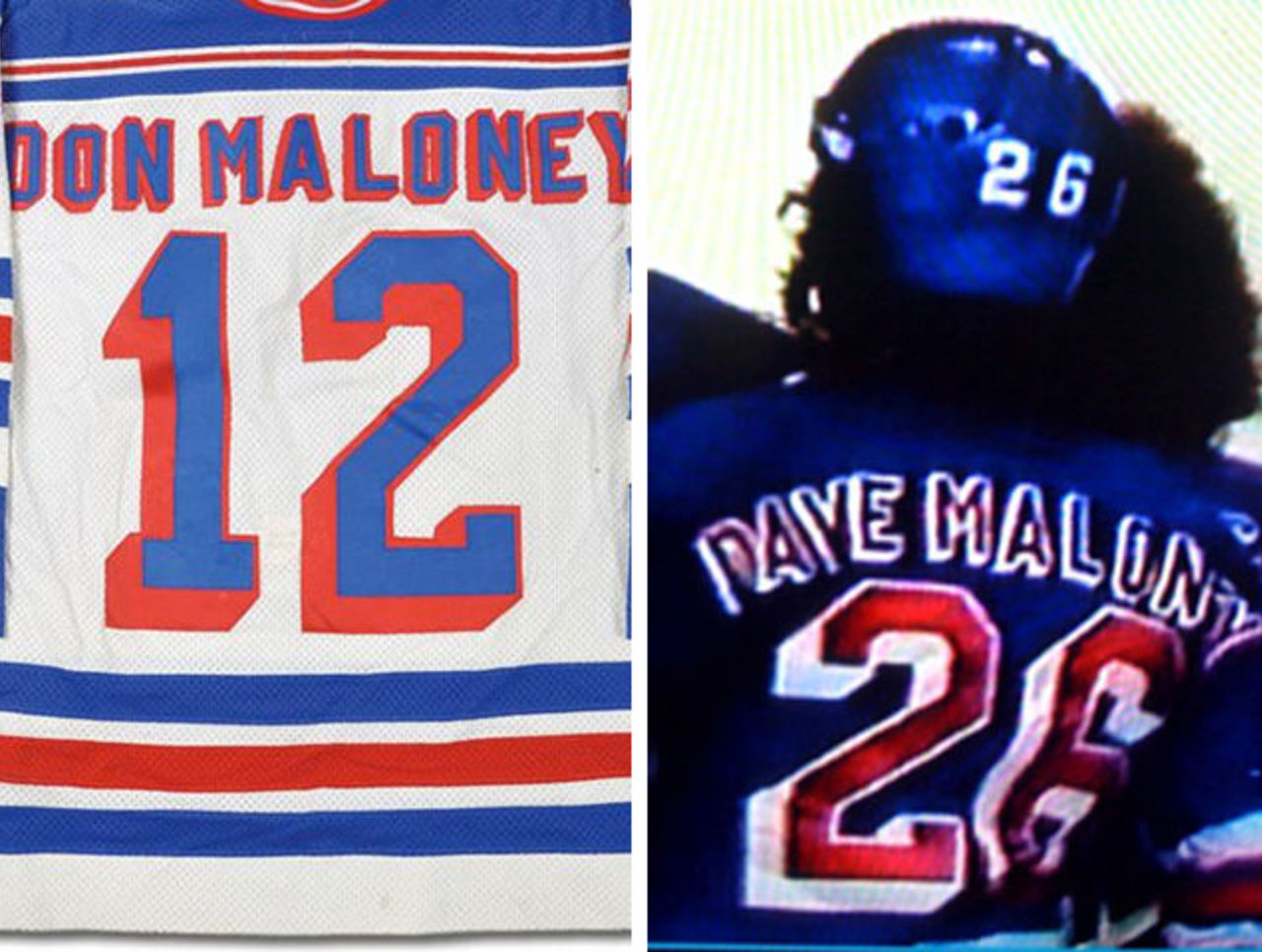 Photo credits: HFBoards for the Dave Maloney and Ron Sutter images, classicauctions.net for the Don Maloney sweater, Bruce Bennett/Getty for Marty Howe