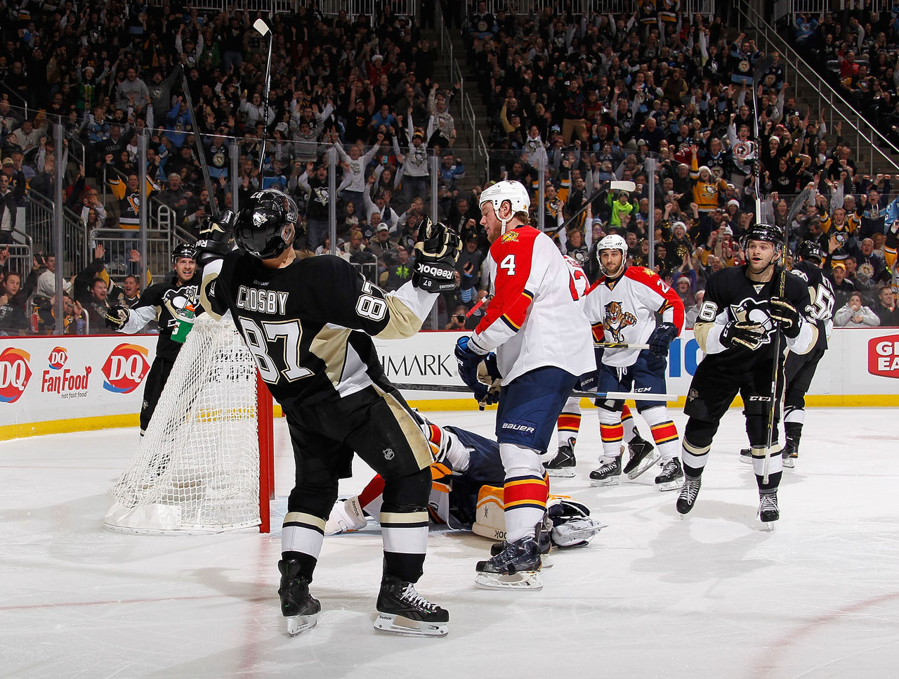 Pittsburgh Penguins captain Sidney Crosby celebrates after scoring a third-period goal against the Florida Panthers.