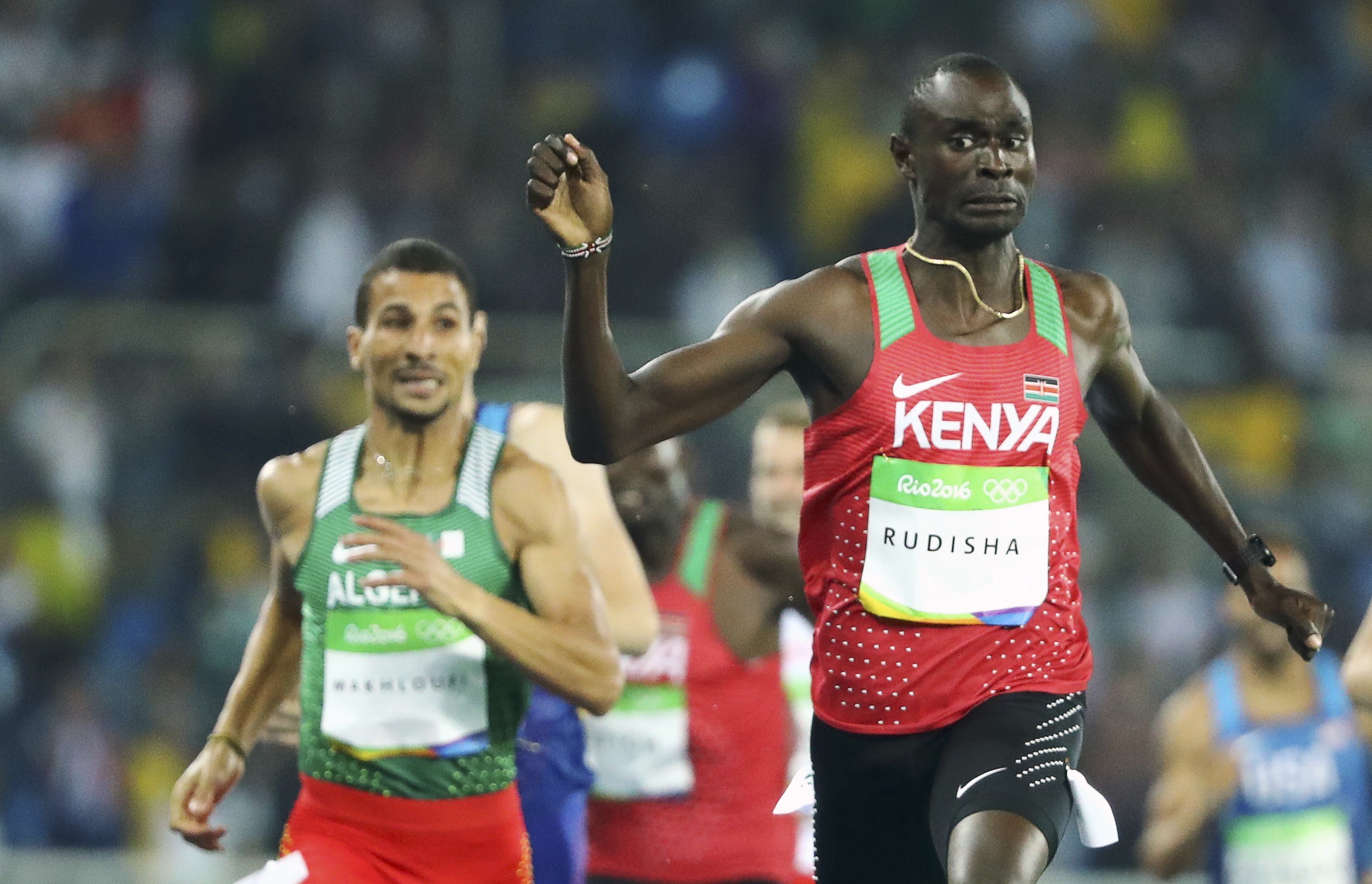 Kenyan David Rudisha takes one final glance over his right shoulder to make certain he's sewn up a second straight gold medal before crossing the line in the 800m final.