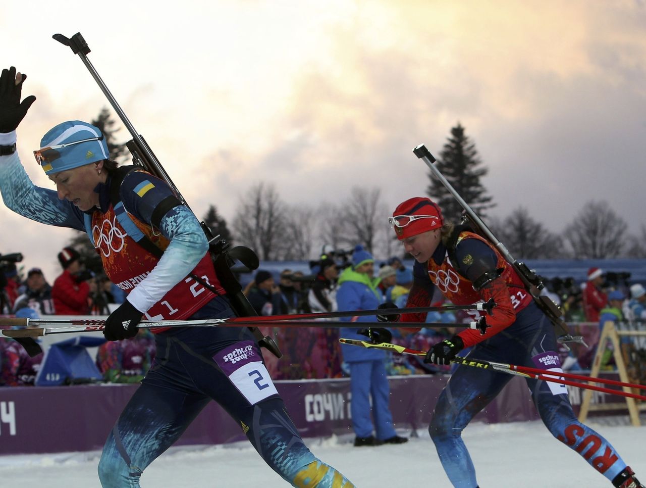 Ukrainian biathlete Vita Semerenko wore a black armband during the women's 4x6 km biathlon relay on Friday, after the International Olympic Committee turned down Ukraine's request to do so.