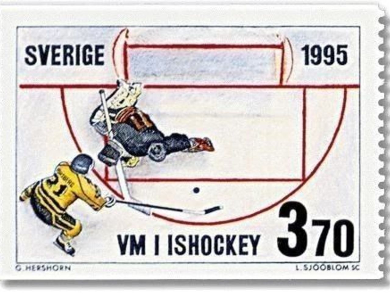 That image is a reference to the stamp that was released in Sweden after Forsberg scored the game-winning shootout goal in the gold medal game during the 1994 Olympics in Lillehammer, Norway.