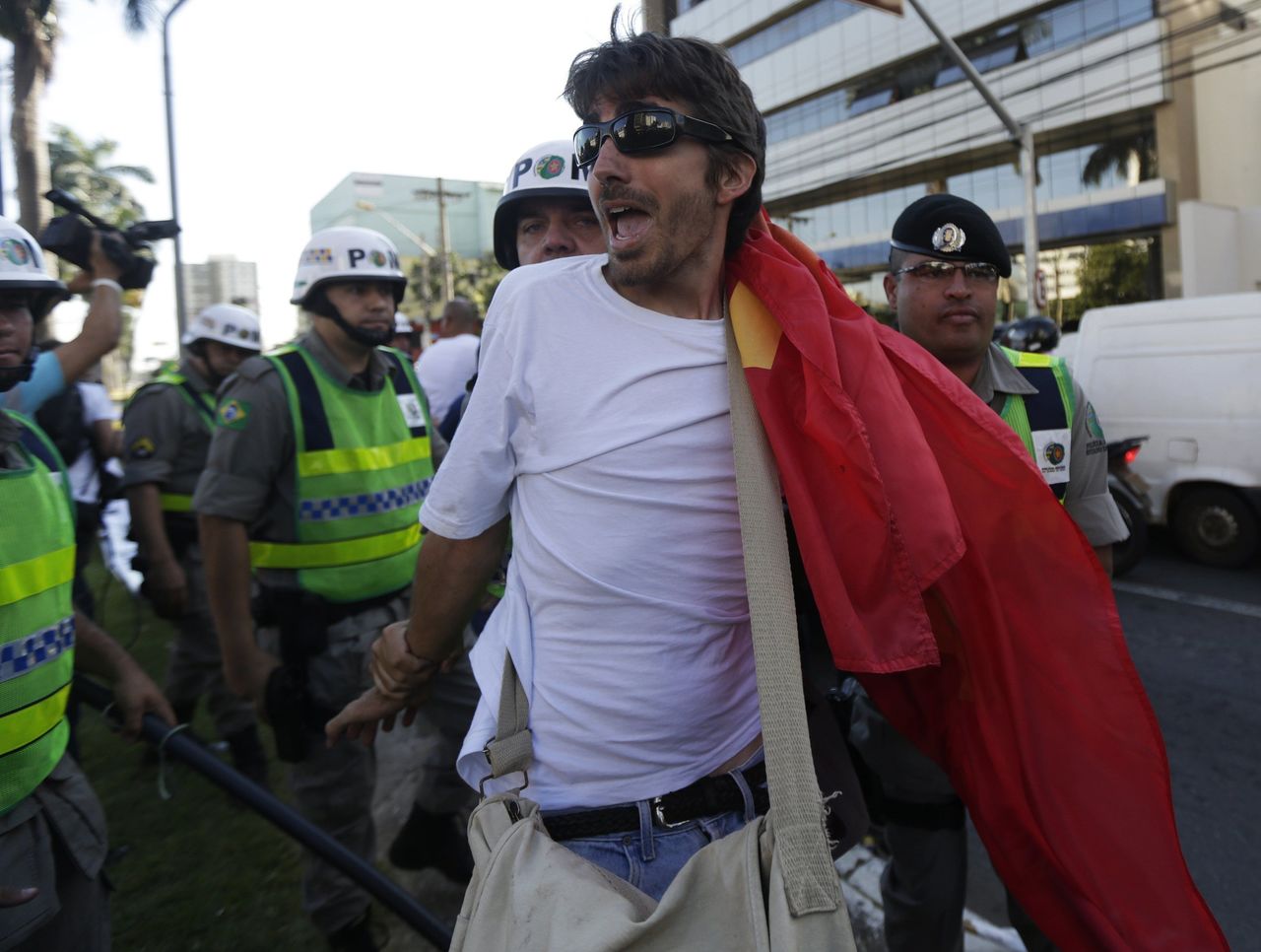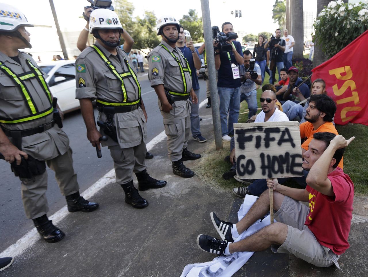 Furious at the amount of money being spent on hosting the tournament instead of the countless social and economic issues that plague Brazil, protesters gathered around the hotel where the national team were staying before heading to the Estadio Serra Dourada.