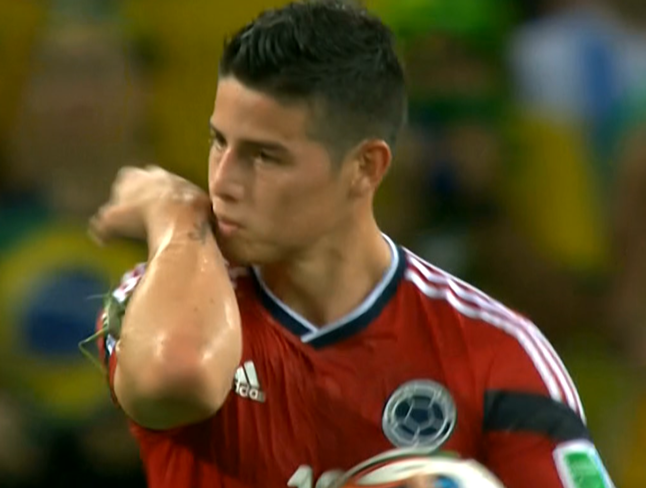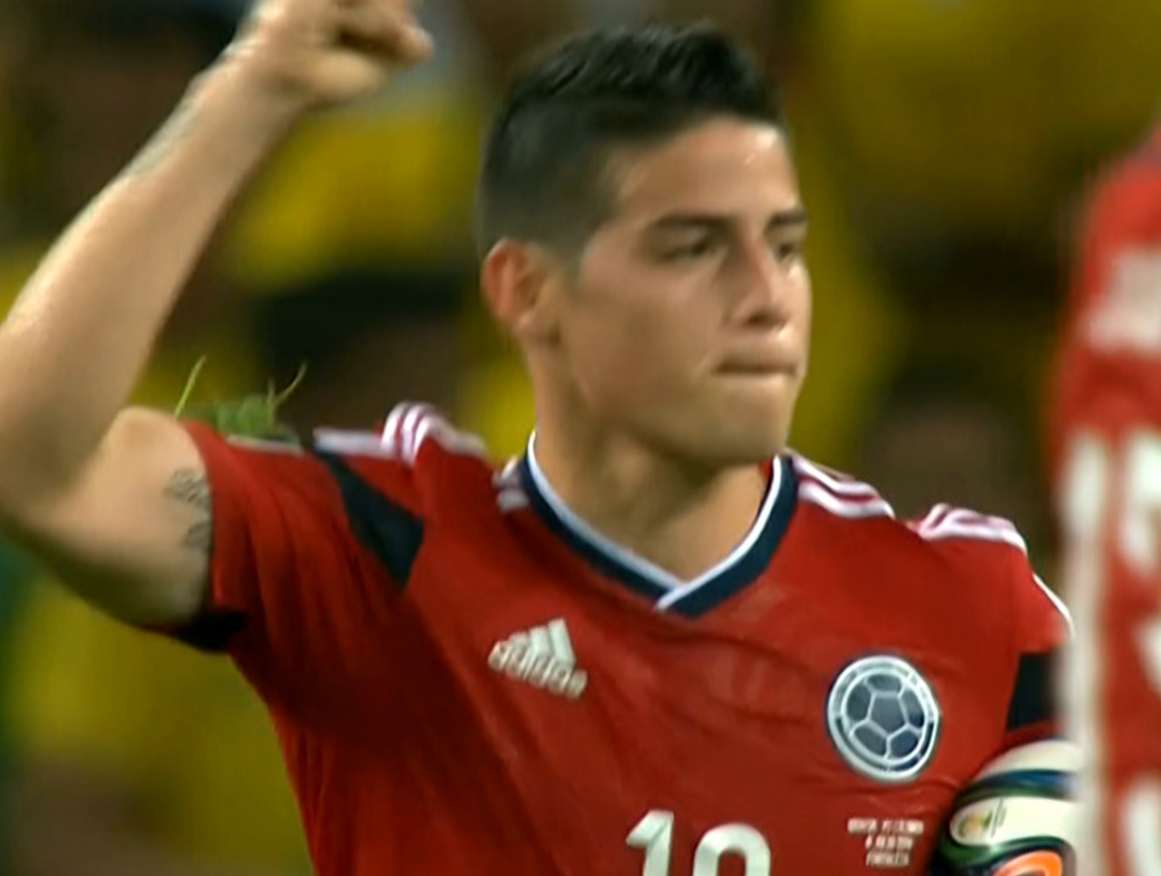 Down two goals, James Rodriguez gave Colombia a fighting chance to tie the match against Brazil when he scored on a penalty kick in the 80th minute. He went to colle--- wait...what is THAT?