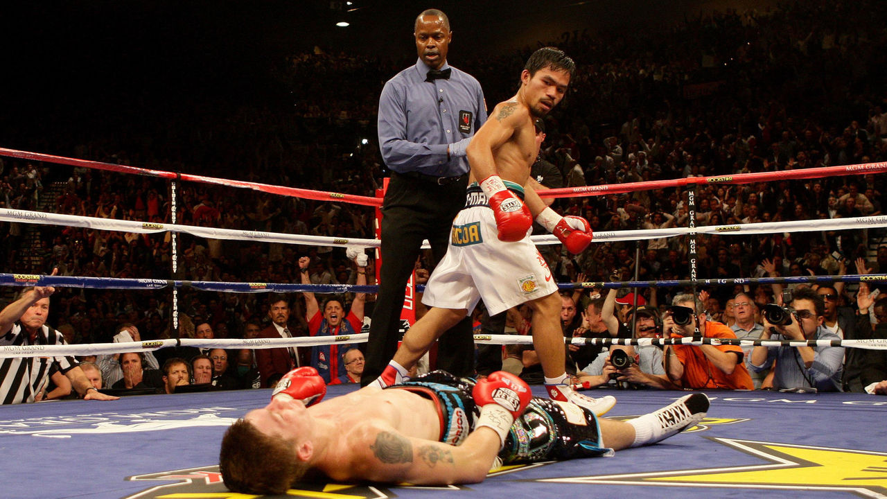 Still, the Brit was considered an underdog, and it quickly became apparent why. Hatton came out overly aggressive, and Pacquiao capitalized, sending his counterpart to the canvas twice in the final minute of Round 1. The Filipino continued to tag Hatton in the following stanza before knocking him unconscious with a vicious left hook with under 10 seconds remaining in Round 2.