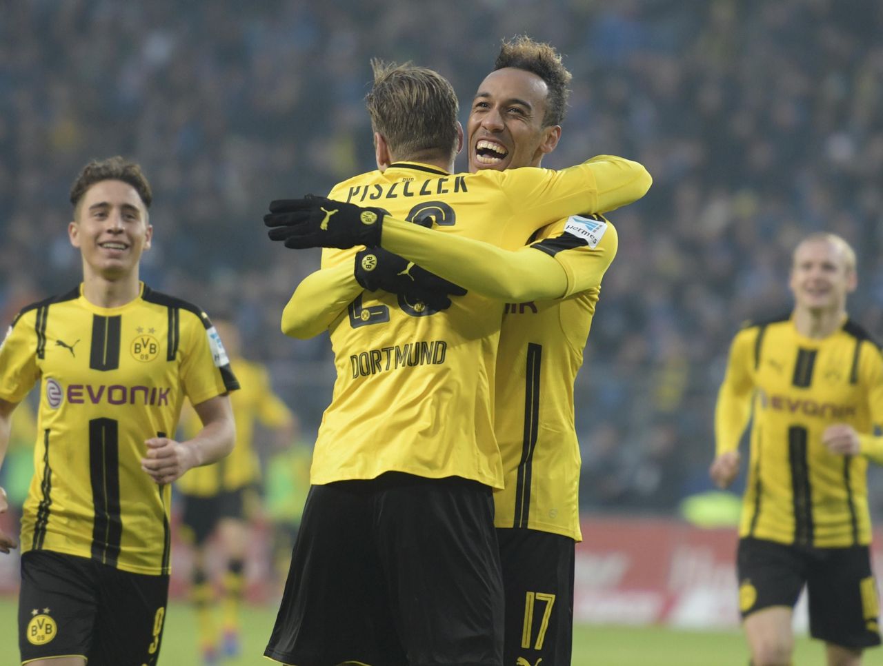 Pierre-Emerick Aubameyang was suspended for Wednesday's Champions League win against Sporting Lisbon, but redeemed himself with four goals in Borussia Dortmund's 5-2 rout of bottom side Hamburg.