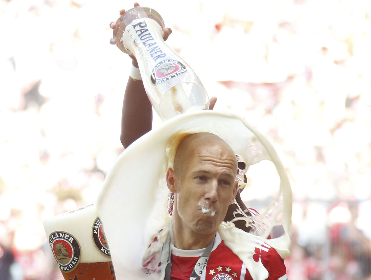 Meanwhile, surprise attacks appeared to be the most popular tactic, as Arjen Robben found out after getting drenched moments after taking a gulp from his own pint.