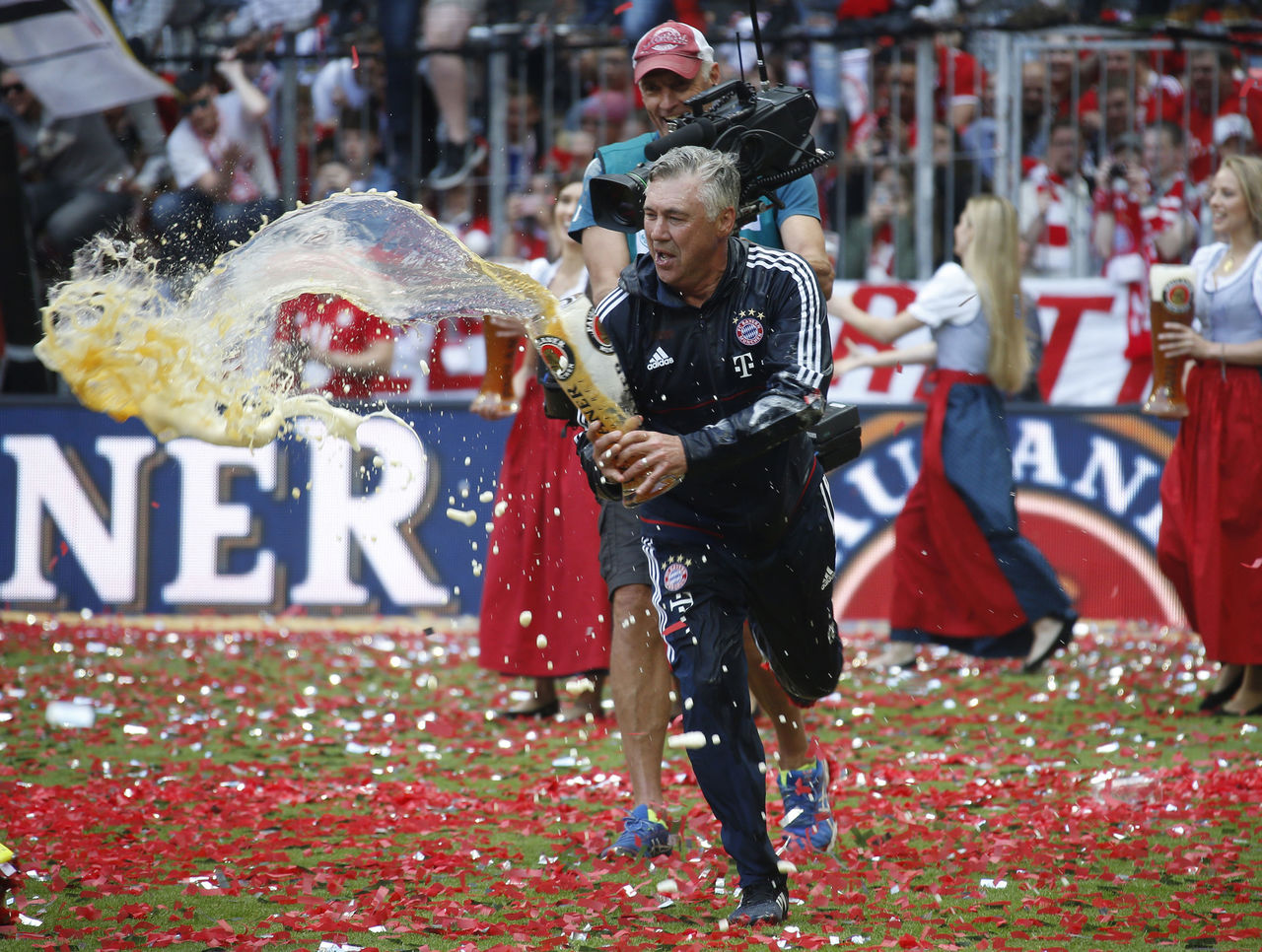 Manager Carlo Ancelotti, celebrating his first league title in Germany, was determined to get in on the action.