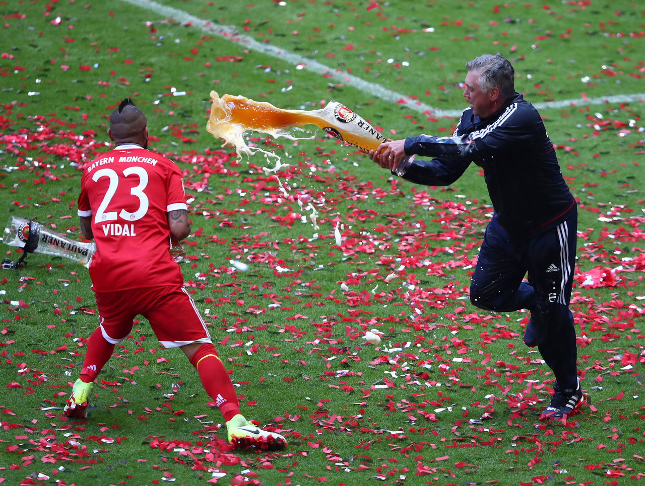 Like Lahm, Ancelotti couldn't escape the beer showers, forcing his Spockian eyebrow to reach previously unthinkable heights.