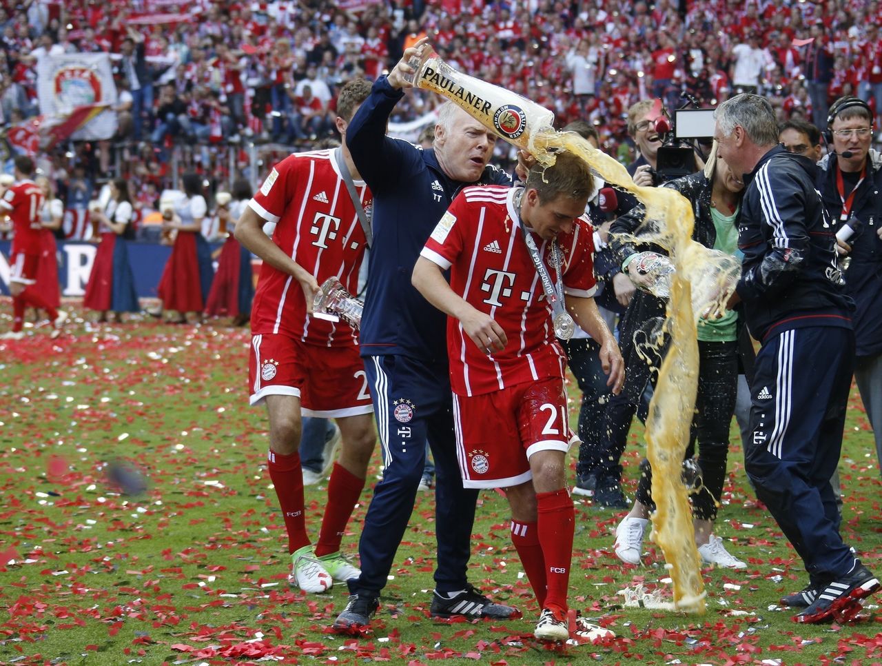 Bayern Munich stars Philipp Lahm and Xabi Alonso bid football farewell before raucous partisan support at the Allianz Arena, and six hours north-west on the A3, Schalke paid Klaas-Jan Huntelaar a similar tribute at the Veltins-Arena.