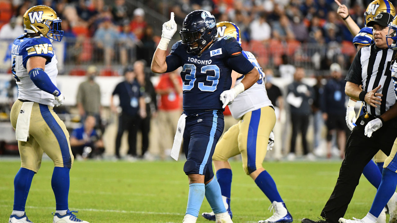 The Argonauts must find a way to stop, or at least contain, Brady Oliveira. The Winnipeg native's emergence last year allowed the Bombers to let Harris walk, and Oliveira repaid their faith with a dominant 1,000-yard season. Toronto's excellent linebackers could play a role in its plan to stop Oliveira, especially if the Argos dress only seven defensive linemen again. But to reach him, the defense has to break up that blue wall that is Winnipeg's O-line. If Oliveira gets going, it could be lights out on the Argos.