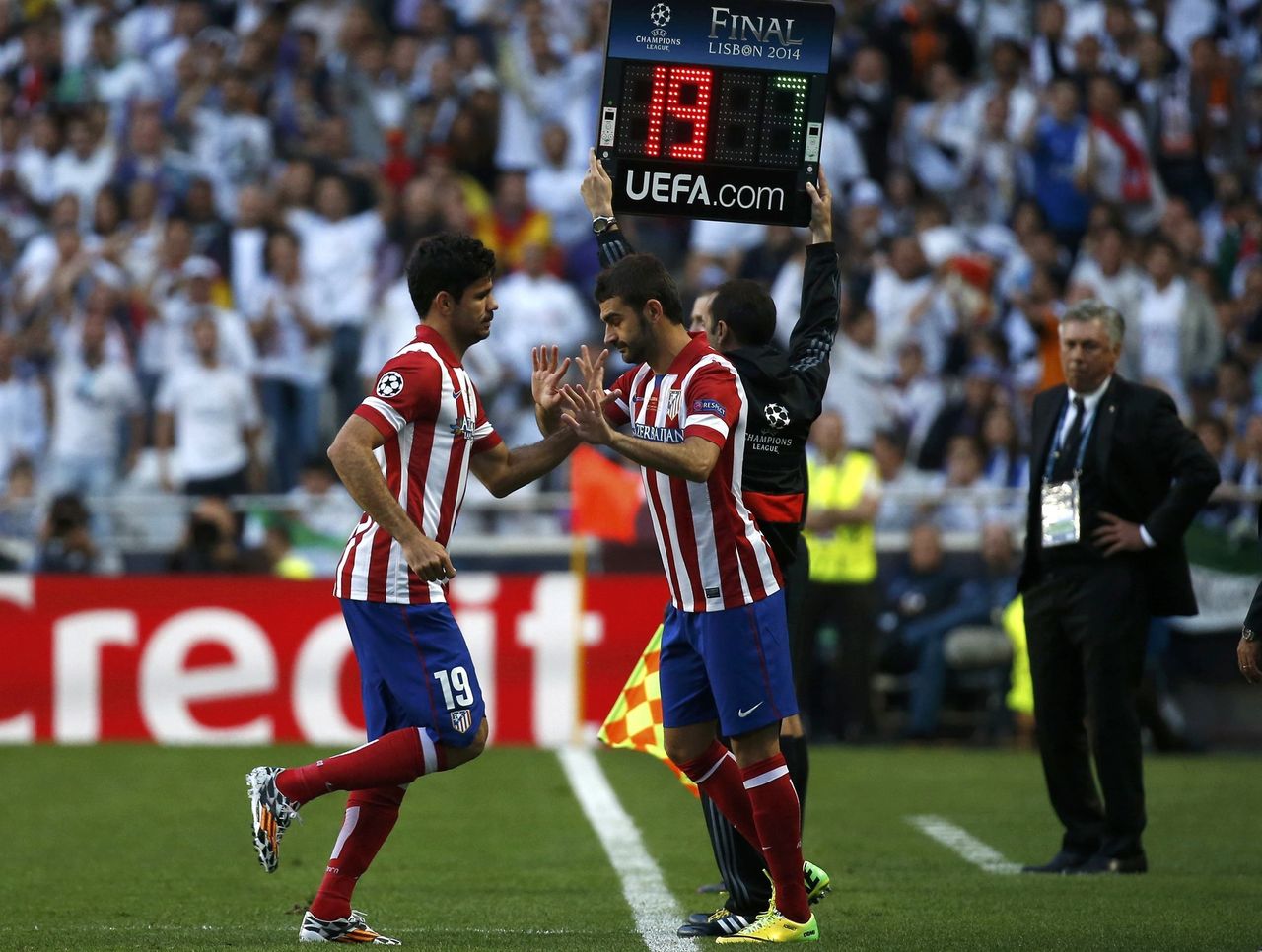 Atleti making a change. Adrián coming on. The miracle placenta was in fact just a placenta.