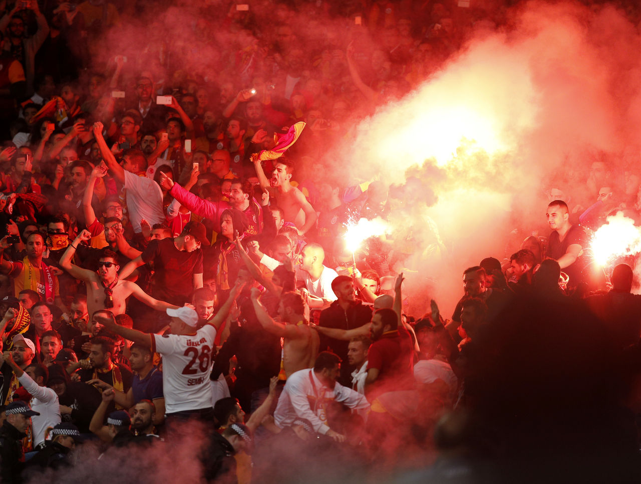It was an offensive performance to behold unless you were standing among the Galatasaray supporters, who proceeded to interrupt the match by launching flares and burning garbage onto the pitch after their side went down 2-0 within the opening 30 minutes.