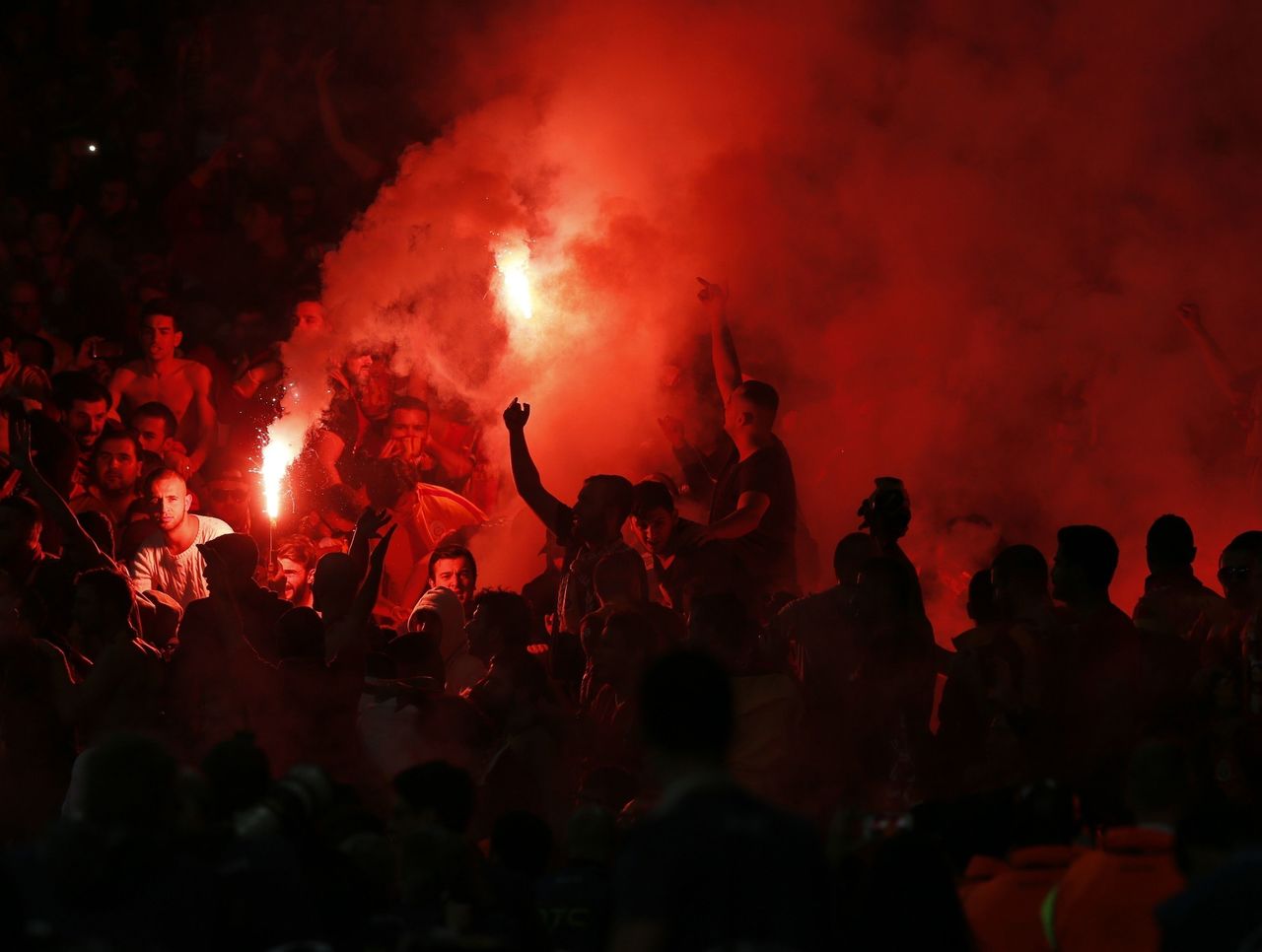That festive atmosphere, however, changed when Galatasaray went down 2-0 and fiery objects were tossed onto the pitch.