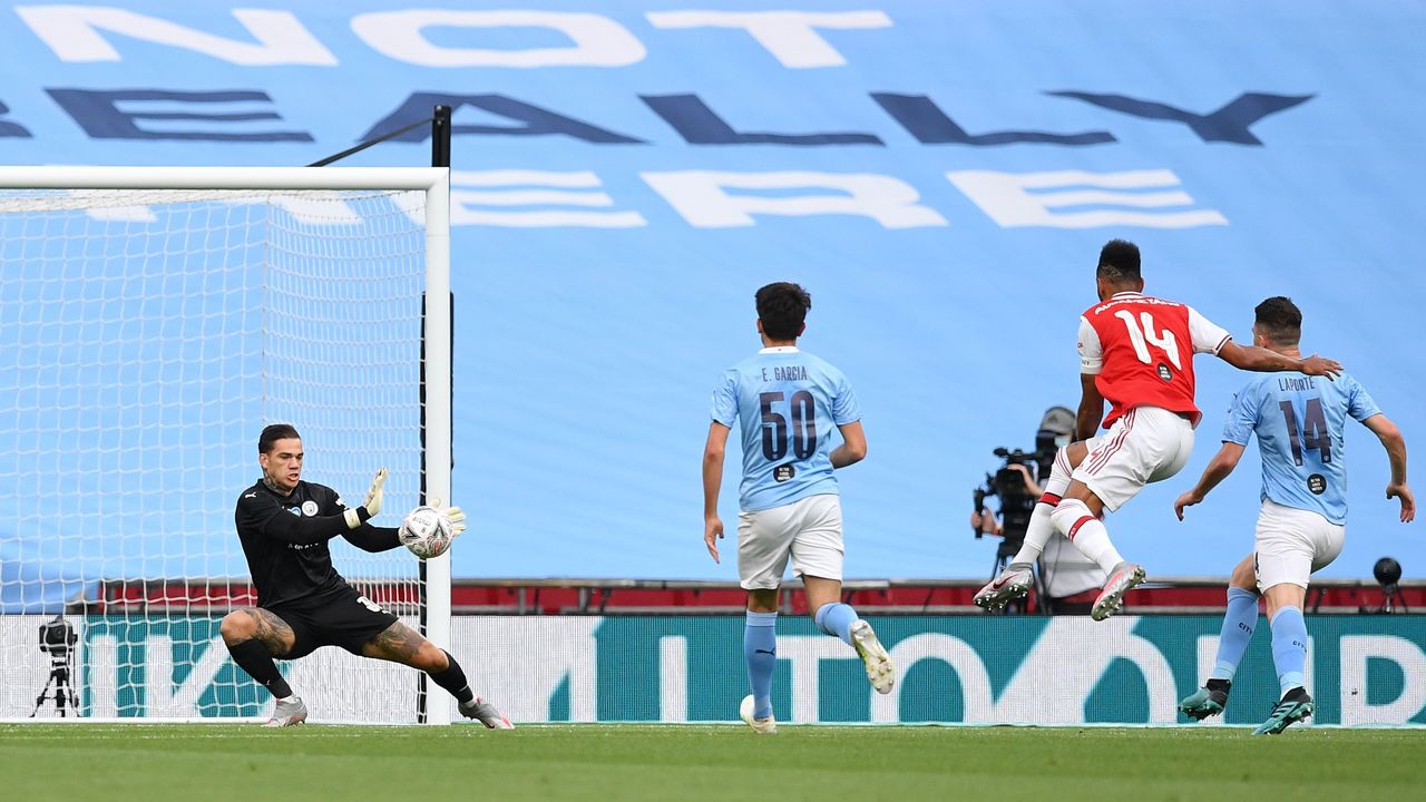 The winger played the ball back to Kieran Tierney, and the Scotsman's first-time ball over the top bounced invitingly ahead of Aubameyang. City's backline had no chance of catching up with the Frenchman, who ran through before pushing the ball between Ederson's legs in the 71st minute.